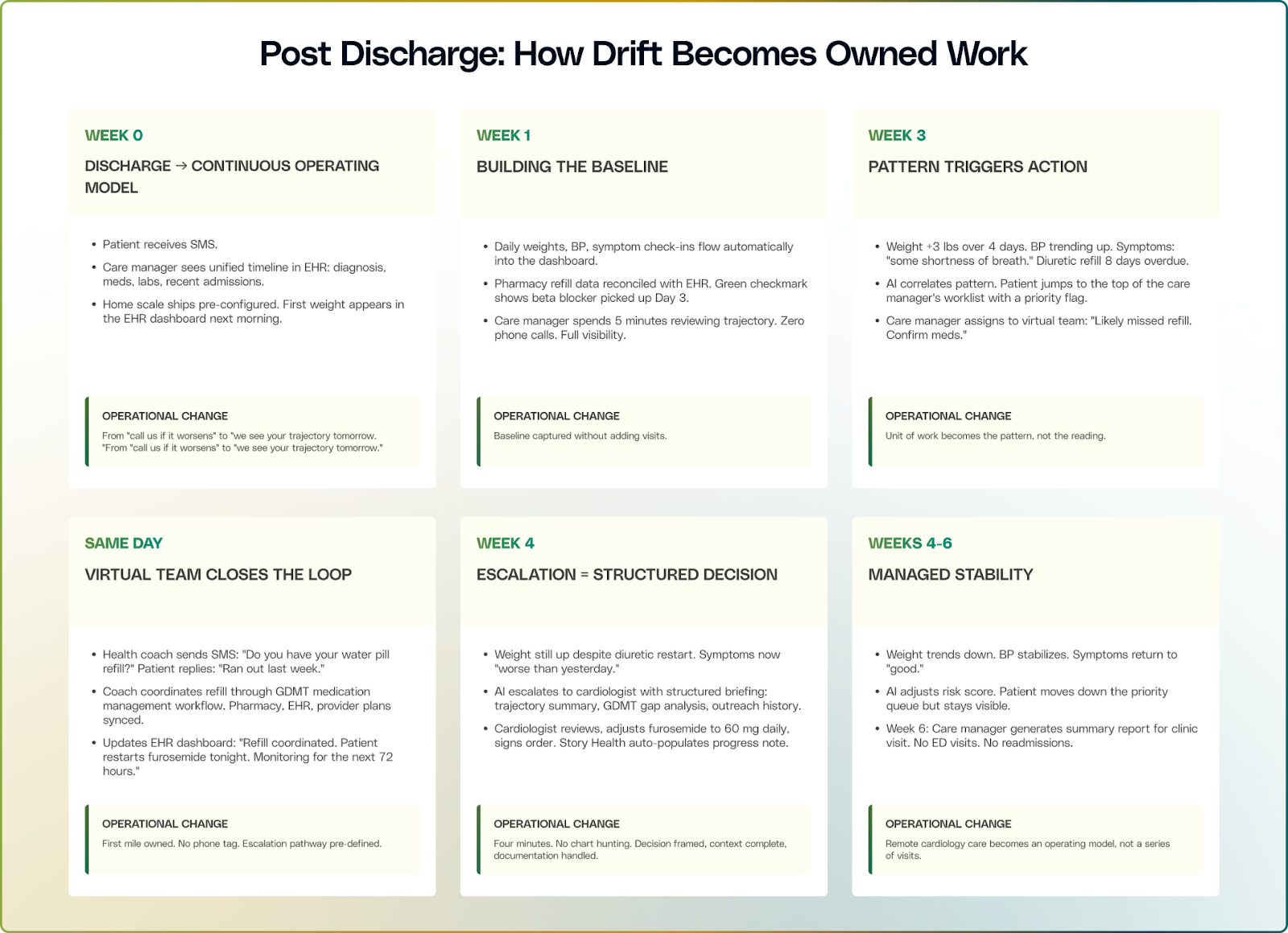 In rural markets, geography makes access harder, but it is not the root problem. The root problem is that early cardiac infarction drift rarely has a clear owner, a clear response time, and a clear playbook.